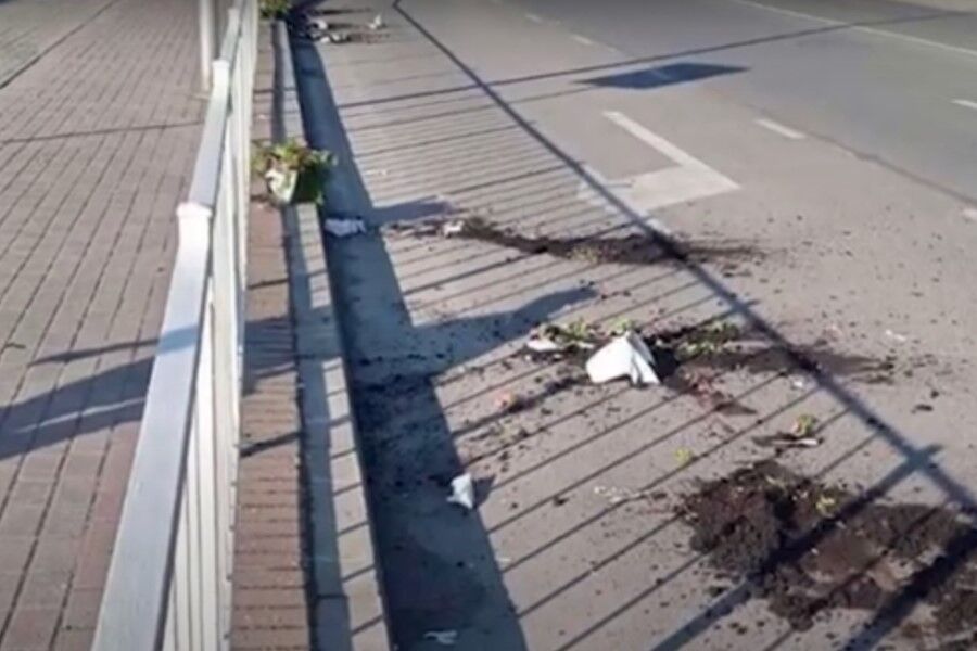 Полиция обнародовала записи уличных камер видеонаблюдения, на которых мужчина в белой футболке и темных шортах подходит к вазонам, украшающим дорожное ограждение, снимает их и с силой бросает на асфальт. Это произошло на улице Ленина.