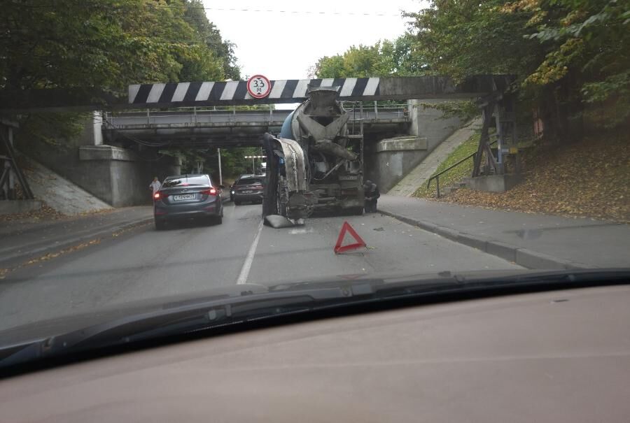 В Калининграде под мостом на улице Островского в очередной раз застрял крупногабаритный транспорт. Об этом сообщается в субботу, 18 сентября, в группе калининградских автомобилистов «ВКонтакте». В этот раз не смог проехать грузовик MAN.