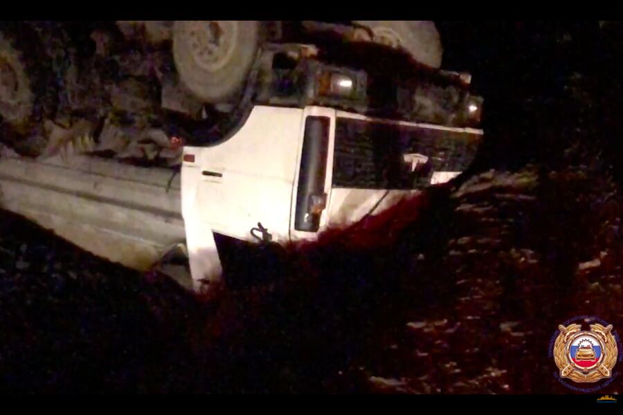 В районе пос. Калиновка водитель буксируемого грузовика не справился с управлением, автомобиль вылетел в правый кювет и перевернулся. 42-летний водитель скончался на месте происшествия до приезда скорой помощи. Ранее об этой аварии сообщали очевидцы.