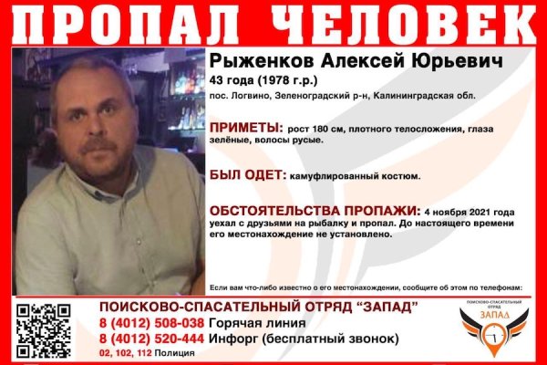 Если вам что-либо известно о местонахождении Рыженкова, сообщите об этом по телефонам: 8 (4012) 508-038 — горячая линия ПСО «Запад», 8 (4012) 520-444 — инфорг ПСО «Запад», 02, 102, 112 — полиция.