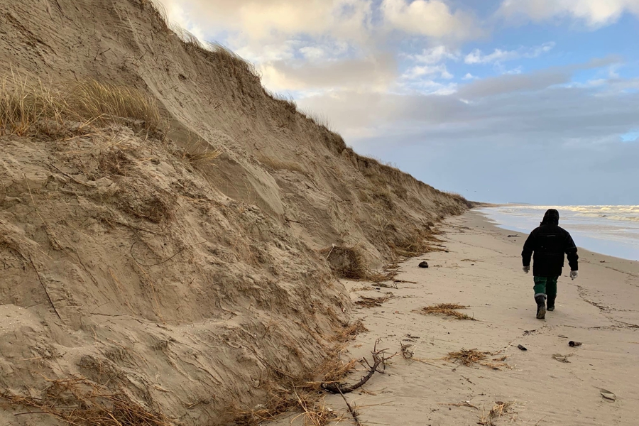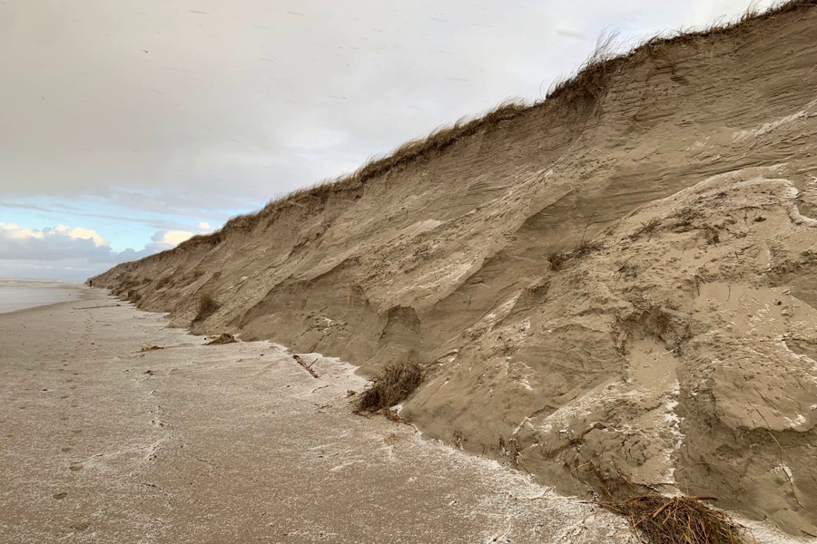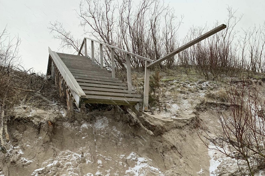 «Посещая море после шторма выходного дня, можно увидеть „съеденные“ дюны, разбитые лестницы, другую пляжную инфраструктуру. Волны и ветер задушили тысячи метров защитного пляжного мыса, местами склоны достигают более 8 метров в высоту», — говорится в публикации.