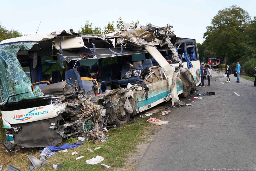 Авария произошла 20 сентября 2020 года. Водитель рейсового автобуса, принадлежащего транспортной компании ООО «Регио-Экспресс», перевозивший пассажиров из Калининграда в Янтарный, выехал на встречную полосу, где автобус врезался в песковоз. В результате ДТП погибли 33-летний водитель грузовика и пять пассажиров автобуса, в том числе 9-летний ребенок, приехавший с родителями из Камчатского края. Еще 22 пассажира получили повреждения различной степени тяжести. Здоровью 3 из них был причинен тяжкий вред.