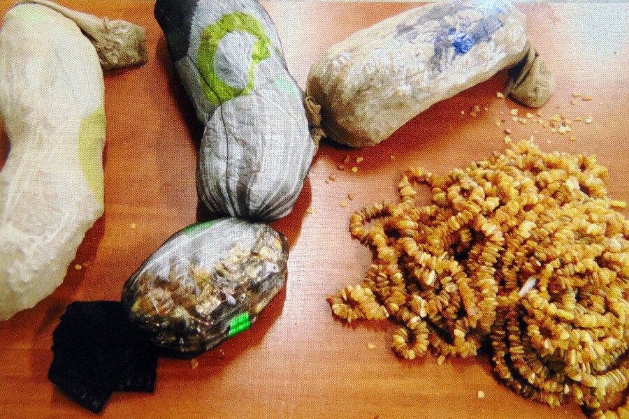 Янтарь обнаружили в салоне и запасном колесе во время досмотра автомобиля. Водитель задержан, найденный товар изъят и направлен на экспертизу. Устанавливаются все обстоятельства правонарушения.