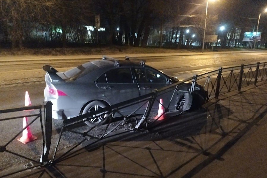 Авария произошла вчера около полуночи на ул. Дзержинского. В сторону Аллеи Смелых ехала «Хонда» под управлением 38-летнего водителя. На прямом участке дороги он отвлекся от управления, разговаривая с пассажиром, машина врезалась в дорожное ограждение справа. Травмы получила 23-летняя пассажирка авто.