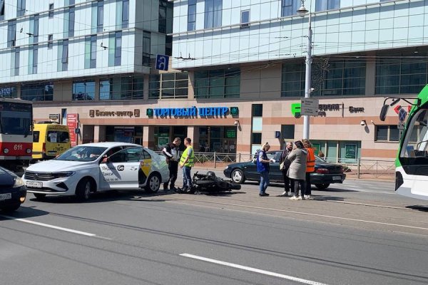 Днем в пятницу произошло ДТП с автомобилем такси и мотоциклом на ул. Черняховского. Они столкнулись на трамвайных путях, сообщил корреспонденту «Нового Калининграда» очевидец.