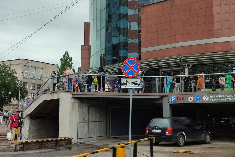 «Пожарный расчёт приехал, но вылезать из машины не собирается. Охрана выгнала всех из-под козырька здания», — рассказал собеседник. Позже приехала полиция, все входы перекрыли бело-красной лентой — это касается и здания «Меги», расположенного через дорогу. «Из-за перекрытых переходов люди просто выходят на проезжую часть и пересекают её во всех направлениях», — отметил очевидец.
