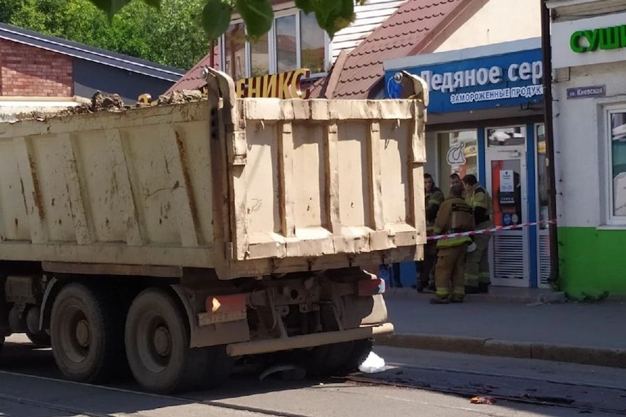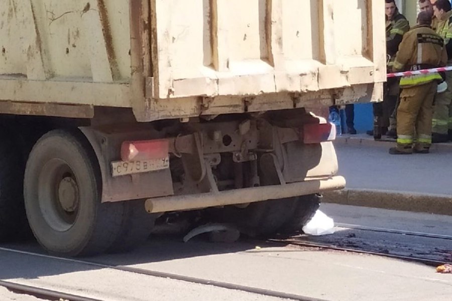 Велосипедист попал под груженый самосвал на трамвайных путях в районе дома №83, он погиб. Тело пострадавшего оказалось зажато под колесами, место происшествия оцеплено, там работают сотрудники МЧС.