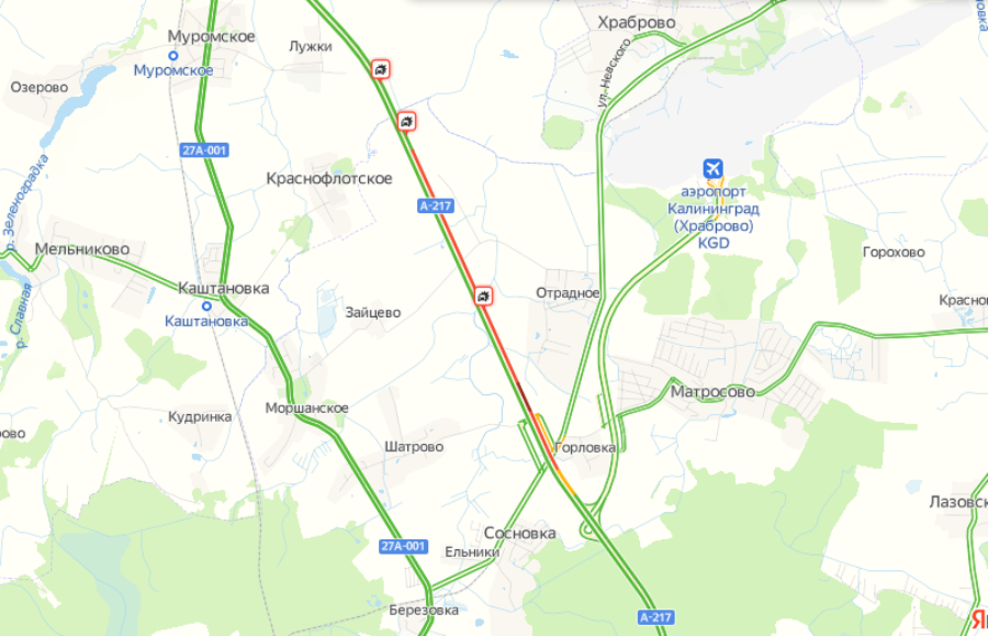 Все аварии произошли на отрезке между поворотами в Храброво и в Зеленоградск длиной около 7 км. В одном ДТП столкнулись два автомобиля, в другом — четыре, в третьем — четыре-пять. Все они произошли по направлению в Зеленоградск. Пострадавших нет. К 14:30 длина пробки составляла около 5 км.