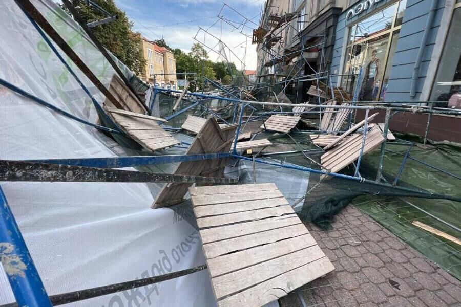 В областном Фонде капитального ремонта прокомментировали обрушение строительных лесов на историческом здании на проспекте Мира в Калининграде.