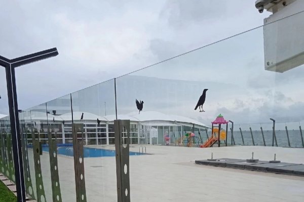В Зеленоградске на стеклянное ограждение вокруг оздоровительного комплекса нанесли силуэты птиц, чтобы обезопасить настоящих пернатых. Об этом в пятницу, 21 октября, сообщает управление Росприроднадзора по СЗФО.