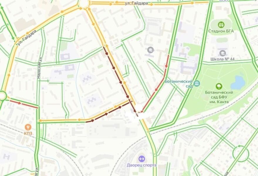 Согласно сервису «Яндекс. Карты», пробка образовалась на ул. Горького, Сибирякова, и Озерной.