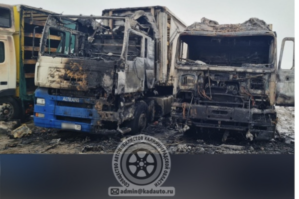 В конце ул. Дзержинского в районе пос. Малое Лесное сгорели два грузовика. Об этом в среду, 7 декабря, сообщают в «Сообществе автомобилистов Калининграда и области».