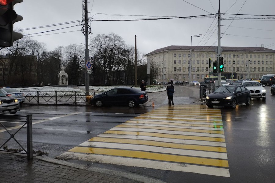 В центре Калининграда легковой автомобиль врезался в ограждение на пешеходном переходе. Об этом корреспонденту «Нового Калининграда» в четверг, 2 февраля, сообщили очевидцы ДТП.