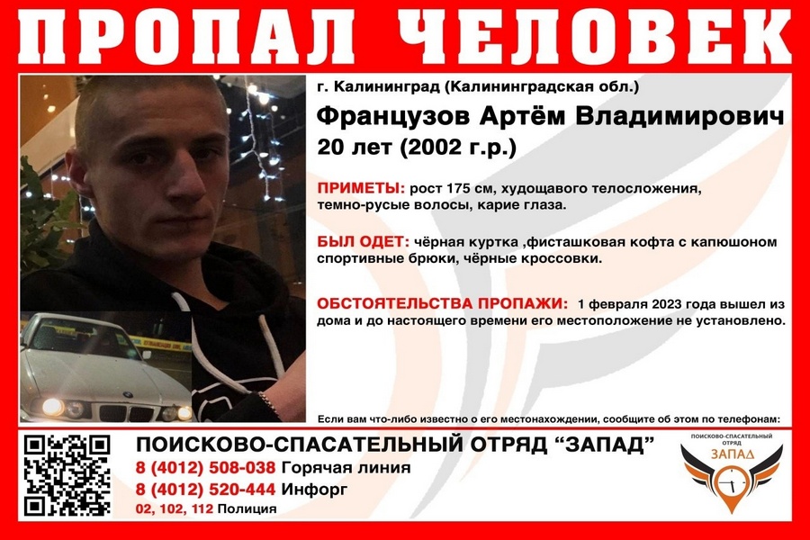 Приметы юноши: рост 175 см, худощавый, темно-русые волосы, карие глаза. Был одет в черную куртку, кофту фисташкового цвета с капюшоном, спортивные брюки, черные кроссовки.