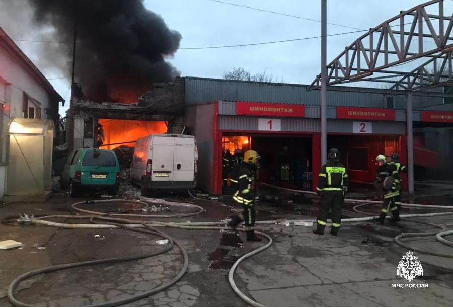 Как отметили в ведомстве, в 7:12 поступила информация о возгорании в боксе шиномонтажной мастерской. К прибытию пожарных огонь охватил 30 квадратных метров и распространялся на помещения боксы.