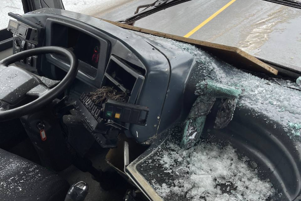 Судя по фото и видео, УАЗ после столкновения оказался в кювете, а у автобуса разбилось лобовое стекло, и общественный транспорт отбросило к тротуарному ограждению.