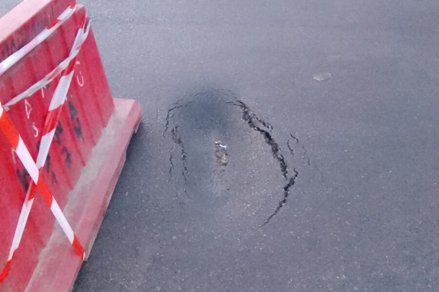 «В Калининграде на пересечении ул. Л. Шевцовой 1в и ул. У.Громовой произошел прогиб асфальтового покрытия. Во избежание аварийных ситуаций уже вчера установлено временное ограждение. Проверяем сети на возможные утечки», — указано в сообщении.