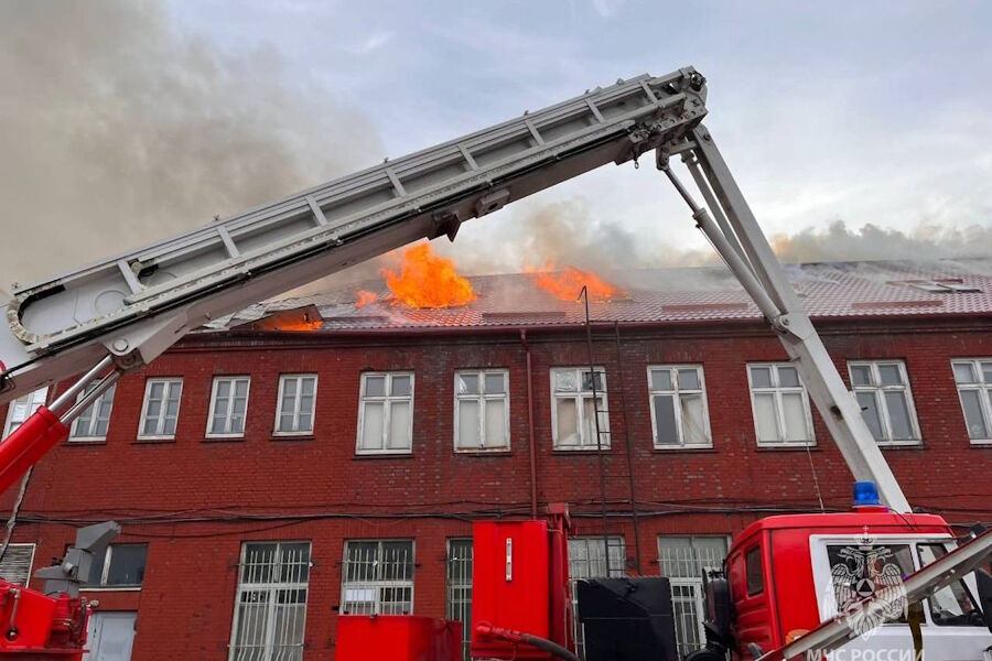 «Горело двухэтажное кирпичное здание довоенной постройки размером 70 на 15 метров, — рассказали в пресс-службе. — Кровля двускатная, из металлопрофиля по деревянной обрешетке со встроенным трехэтажным кирпичным административным зданием размером 15 на 15 метров, кровля плоская рубероид по бетонному основанию. Сгорело чердачное помещение на площади 1300 квадратных метров». Уточняется, что было эвакуировано 46 человек. Пострадавших нет.