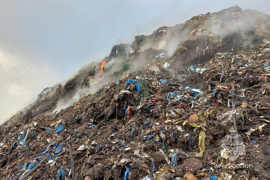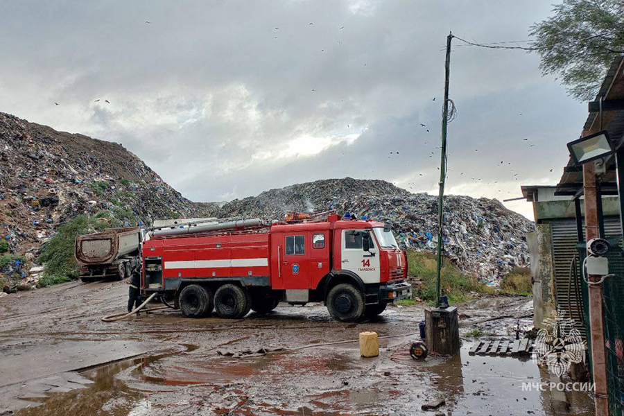 На полигоне продолжают работу пожарные. «На месте производятся работы по просыпке песком, грейдированию поверхности свалки ТБО, проливке водой. В работе задействованы 15 человек личного состава и 14 единиц техники», говорится в сообщении.