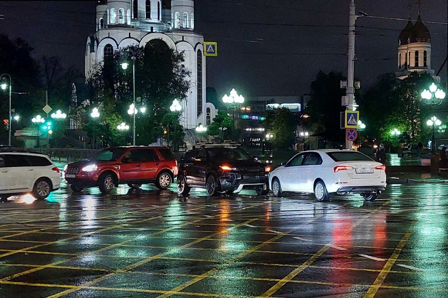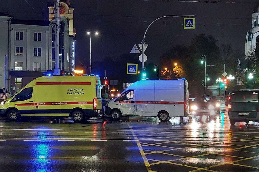 Столкновение случилось в 19:30 у здания горадминистрации. Автомобиль скорой помощи (им управлял 28-летний мужчина) выехал на перекресток на «красный» с включенными проблесковыми маяками. В этом время слева направо относительно движения «скорой» ехал «Ленд Ровер» под управлением 45-летнего водителя. Машины столкнулись, внедорожник отбросило на двигавшуюся попутно сзади «Шкоду» под управлением 33-летнего водителя.
