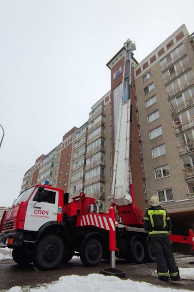 Для демонтажа аварийного декоративного элемента пожарным пришлось использовать профессиональную технику — коленчатый автоподъемник АКП-50 с высотой стрелы 50 метров. Аварийный флюгер был снят, сейчас жильцам дома и прохожим ничего не угрожает.