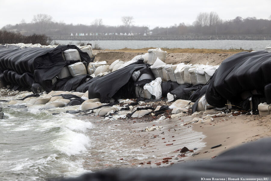 «Выдерживают ли стихию берег и укрепления ГБУ КО „Балтберегозащита“? Нет, не выдерживают, — написали музейщики. — И это тоже хорошо видно на фото, сделанных после шторма. Защита развалилась и продолжает разваливаться прямо на глазах. Мешки с песком (биг-бэги) разрывает и уносит напрочь».