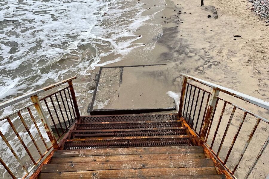 В Заостровье во время февральских штормов снова разбило часть лестничного спуска на пляж в районе дома-интерната для престарелых «Сосновая усадьба». Как сообщают очевидцы, волнами выбило некоторые ступени нижнего пролета.