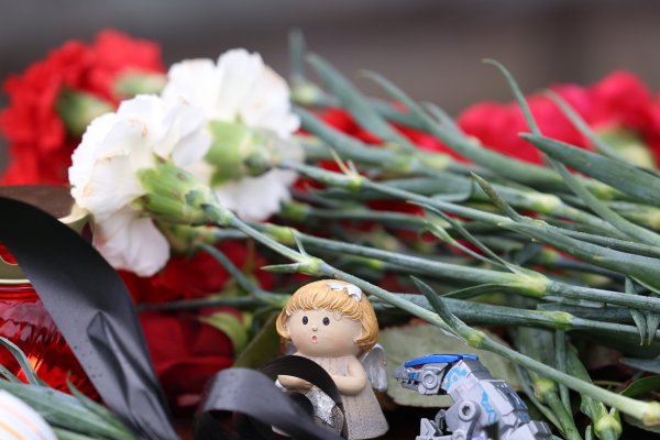 По данным информагентства, на поминальную службу пришли сотни человек. Люди продолжают приносить игрушки и цветы. Перед панихидой в расположенном рядом Никольском соборе отслужили литургию.