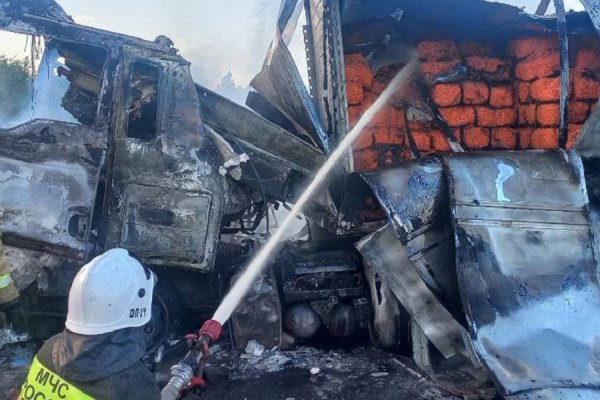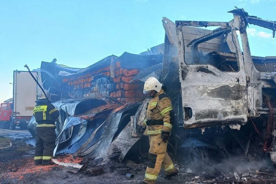 МЧС назвало причину возгорания фуры, заблокировавшей накануне трассу (фото)