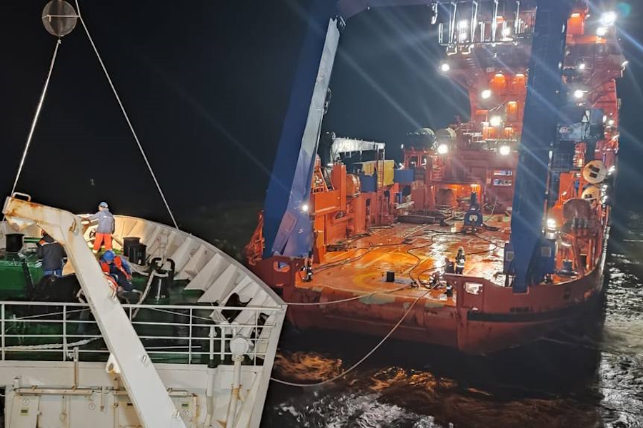 Многофункциональное судно-спасатель «Мурман» прибыло в район якорной стоянки научно-исследовательского судна «Академик Николай Страхов», у которого перестал работать двигатель, и взяло его на буксир. Об этом в своём Telegram-канале сообщает пресс-служба Минобрнауки.