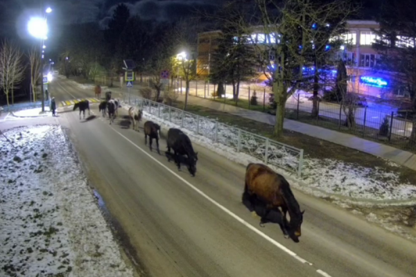 Ночью 13 января на проезжей части улицы Новой в Светлогорске был замечен табун лошадей. Об этом рассказал в соцсетях глава администрации муниципалитета Владимир Бондаренко, назвавший происходящее «конным туризмом».