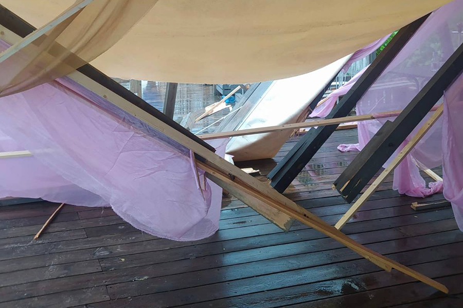 «Сегодня, 22 июля, в 15:35 в спасательные службы поступило сообщение о том, что в посёлке Малиновка Зеленоградского района от дождевой нагрузки не выдержала и обрушилась крыша летнего кафе. В результате этого частью стропильной системы задело женщину. Пострадавшая госпитализирована в медицинское учреждение», — говорится в сообщении.