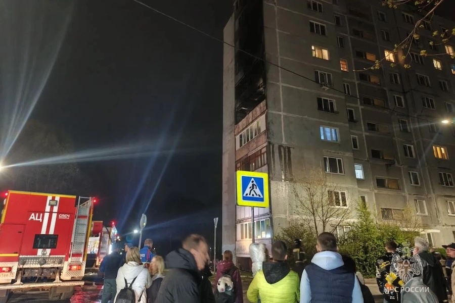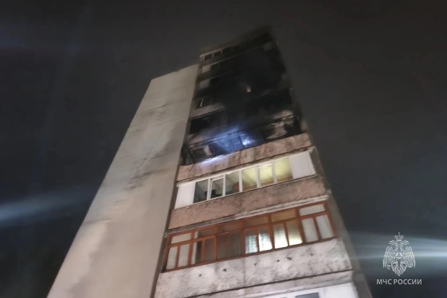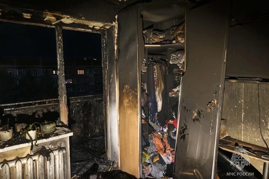 В квартире на пятом этаже горели комната и балкон. В тушении было задействовано 25 сотрудников МЧС и 8 единиц техники. Причина пожара устанавливается.