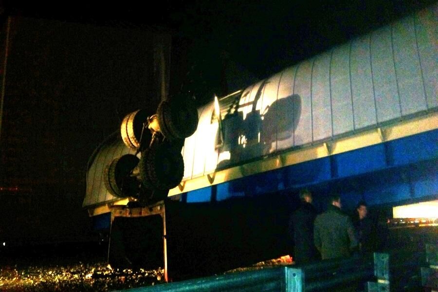 УМВД: надземный переход под Калининградом сбил самосвал с поднятым кузовом (фото)