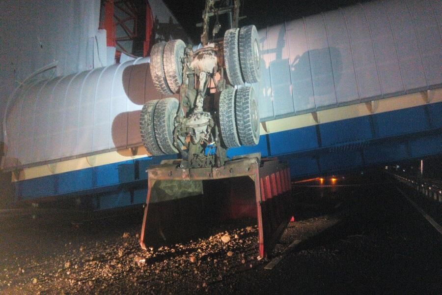 Известно, что самосвал возвращался из поселка Малиновка, где у него проходил ремонт двигателя. По данным полиции и по словам дальнобойщиков, следовавших за грузовиком по трассе, водители других большегрузов пытались подавать сигналы самосвалу с поднятым кузовом. Они мигали «аварийками» и дальним светом.
