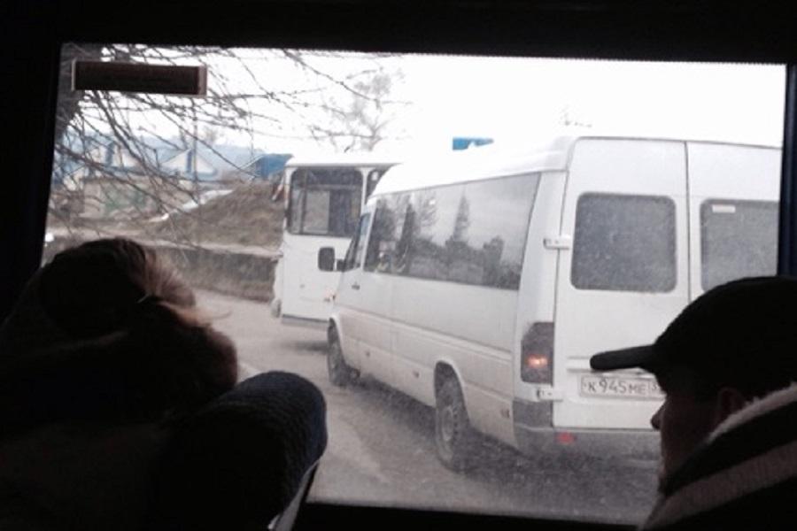 По словам свидетелей ДТП, в районе магазина «Кэш» на Московском проспекте маршрутка пыталась въехать на дублирующую дорогу и столкнулась с ехавшим там автобусом. Никто из людей не пострадал. На место прибыли представители ГИБДД. Движение на въезд в город затруднено.