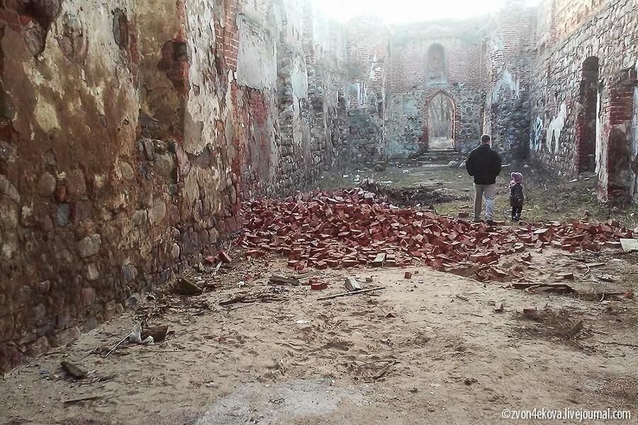 По словам Натальи, у здания обрушилась часть крыши, начали осыпаться стены. «Упавшие кирпичи до сих пор лежат на земле, совсем скоро их растащат местные жители, и я не знаю, к кому обратиться, чтобы сохранить их для гипотетической реставрации. Да ладно реставрации, законсервировать кирху — не такое уж сложное дело. А на очереди — подгнившие деревянные перекрытия», — рассказала она.