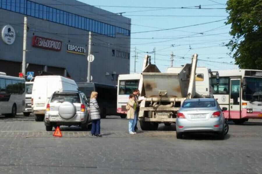 ДТП случилось около торгового центра «Виктория». На пересечении двух проспектов столкнулись мусоровоз и легковой автомобиль «Тойота». Никто из людей в результате аварии не пострадал. Столкнувшийся транспорт перегородил перекресток, движение сильно затруднено.