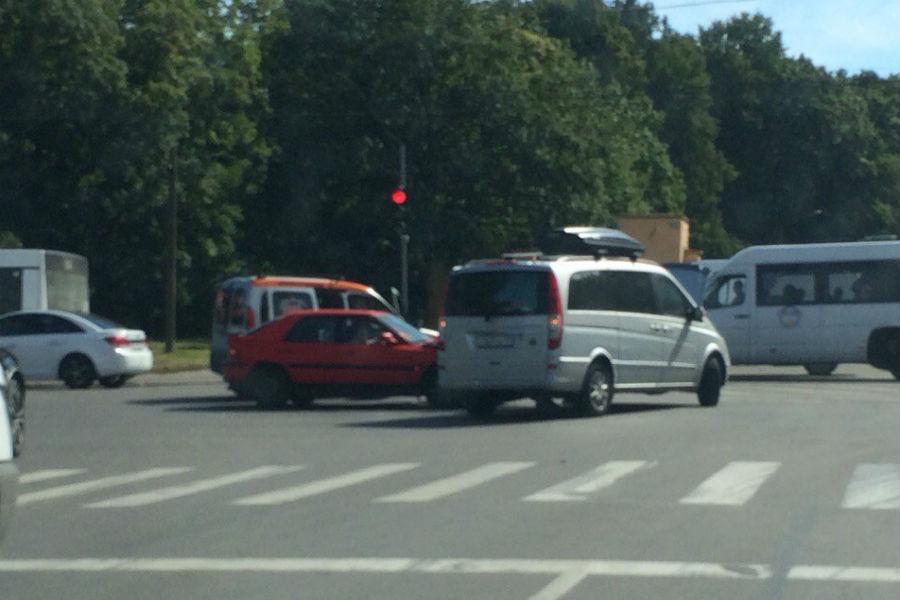 На кольце всего в нескольких метрах друг от друга столкнулись две пары легковых авто. Никто из людей в результате аварий не пострадал, движение транспорта слегка затруднено.
