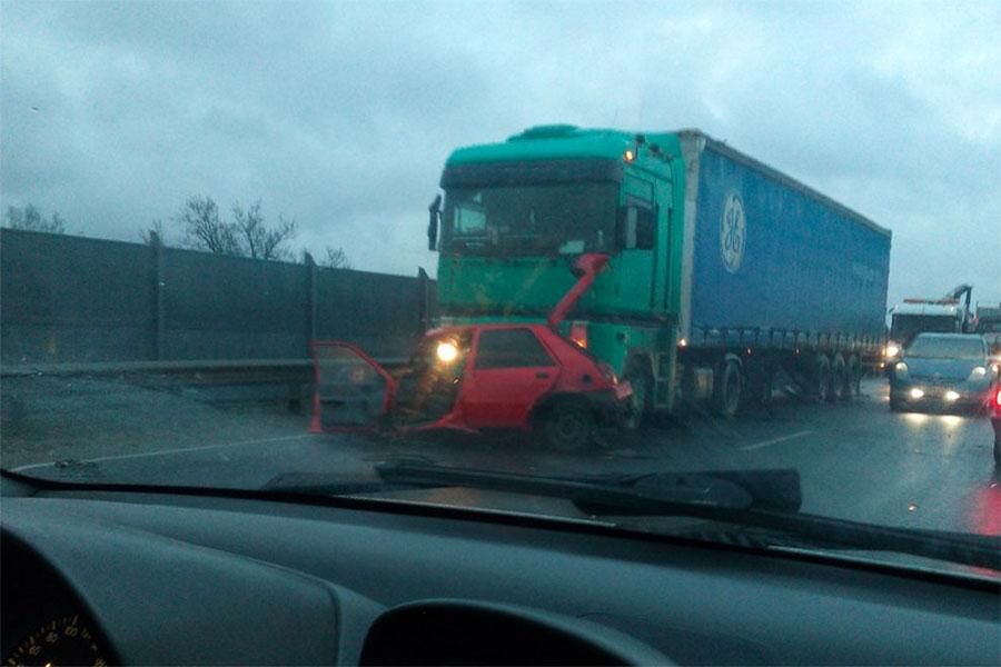 По предварительным данным, легковой «Форд» пошел на обгон фуры. Не убедившись в безопасности маневра, на встречной полосе легковушка врезалась в грузовик, от удара автомобиль отбросило на фуру, которую водитель пытался обогнать. Тяжеловесный автомобиль серьезно повредил иномарку. Пострадали водитель и пассажир. Одного из них в бессознательном состоянии с травмами забрала скорая, второй находится в сознании, медики оказывают ему помощь.