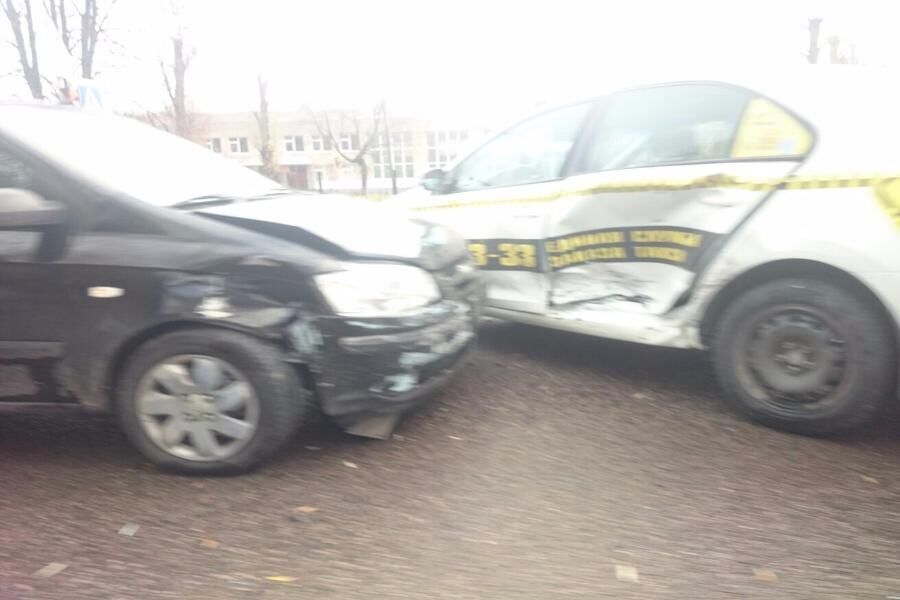 ДТП произошло на повороте. Легковушка врезалась в бок такси. По предварительным данным, никто из людей в аварии не пострадал. Машины получили технические повреждения. Автомобилям, следующим по ул. Горького в сторону центра, приходится объезжать участников аварии.