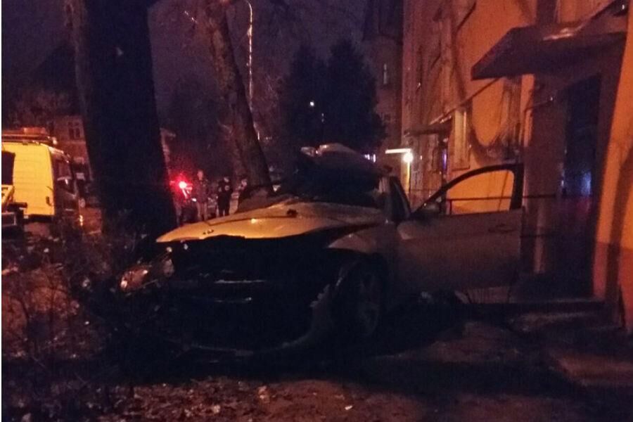 Ночью в Калининграде на ул. Озерной «БМВ» врезался в дерево. Об этом корреспонденту «Нового Калининграда.Ru» сообщили очевидцы.
