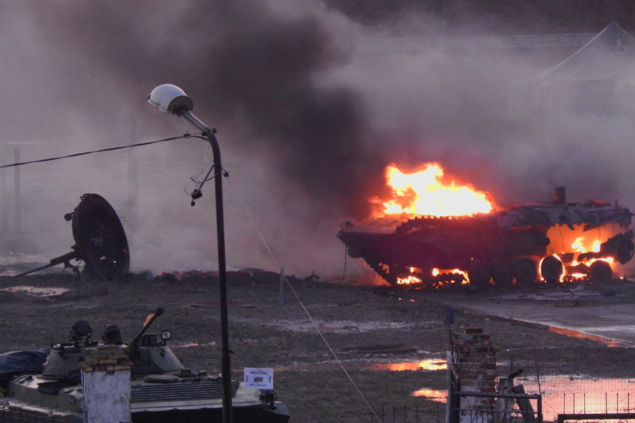 Пожар случился около 8:00 в пятницу. В 8:35 силами личного состава части и пожарными расчетами МЧС возгорание было локализовано, машина потушена. Перекидывания пламени на автобоксы и другую технику удалось избежать.
