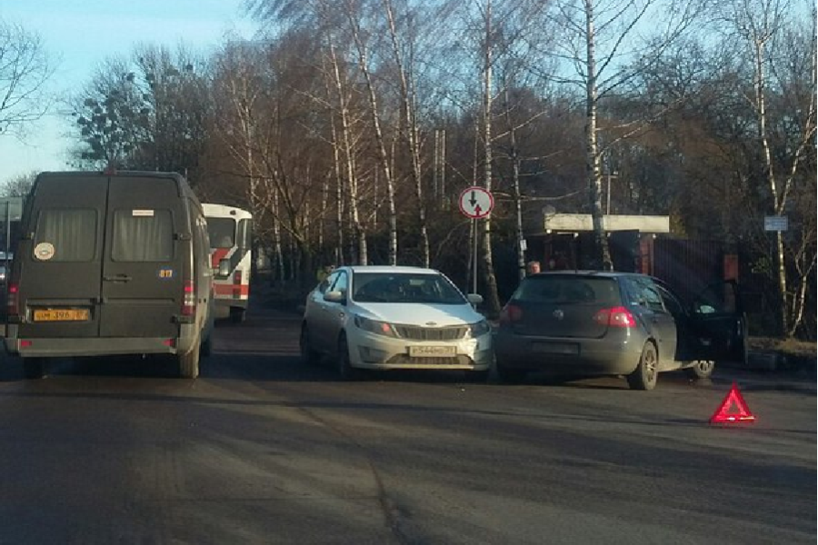 Авария случилась в понедельник около 16:00. На дороге столкнулись «Киа» и «Фольксваген». По данным свидетелей, никто из людей не пострадал. Движение транспорта затруднено.