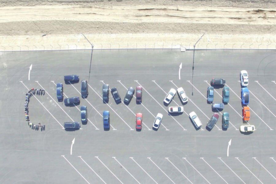 При содействии Госавтоинспекции автомобилисты региона устроили флешмоб. 27 машин выстроились на площадке, образуя надпись «С 9 мая!».