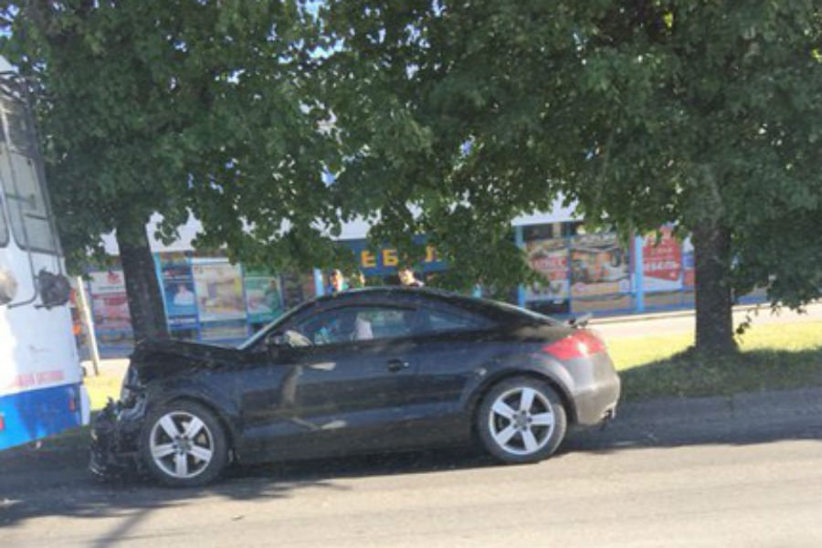 Как уточняют очевидцы, ДТП случилось в районе ТЦ «Гиант». Автомобиль «Ауди» врезался в троллейбус. Машина получила технические повреждения.