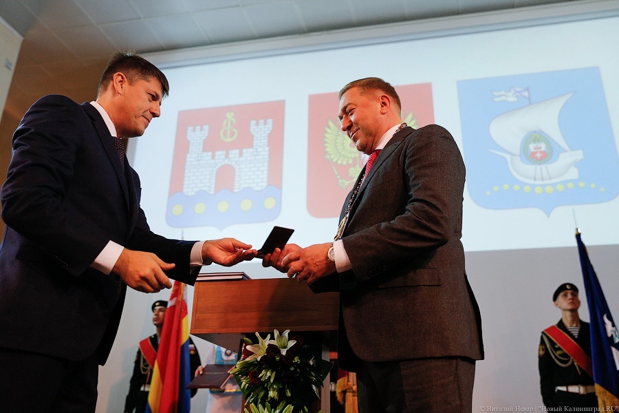 Александр Ярошук официально вступил в должность главы Калининграда. В четверг, 7 ноября, глава городского совета Калининграда Андрей Кропоткин вручил ему почетные знаки руководителя, сообщает корреспондент «Нового Калининграда».