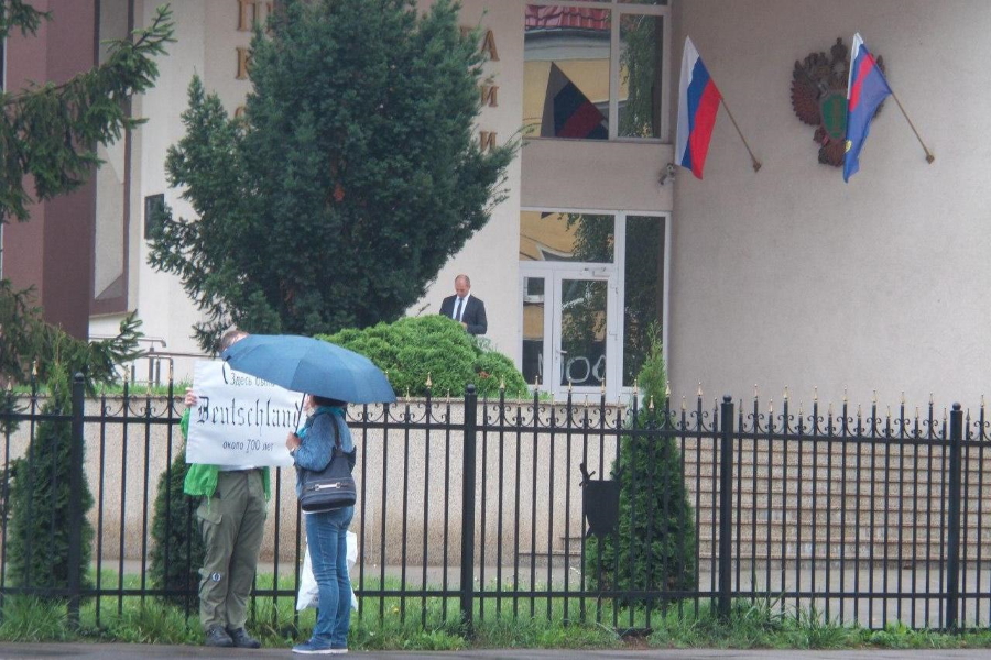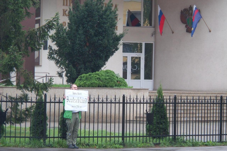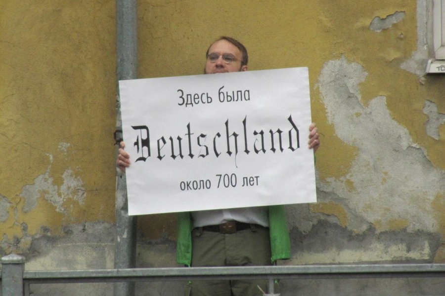 Калининградский акционист Хагай Румянцев вышел на одиночный пикет к областной прокуратуре на ул. Горького в защиту немецкоязычных надписей. Как сообщил «Новому Калининграду» очевидец, калининградец встал напротив здания прокуратуры с плакатом «Здесь была Deutschland около 700 лет».