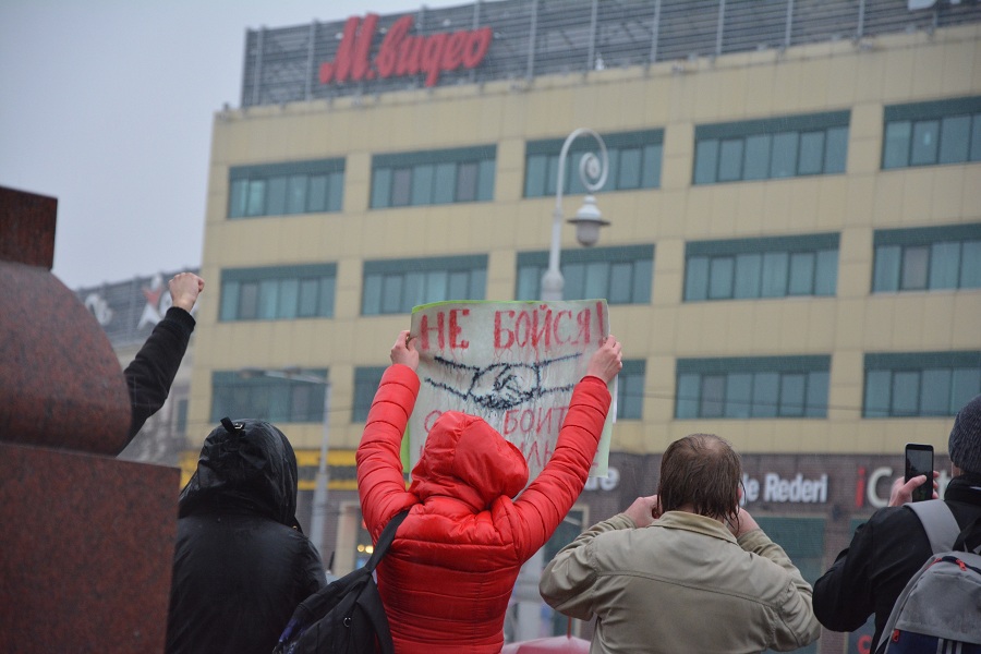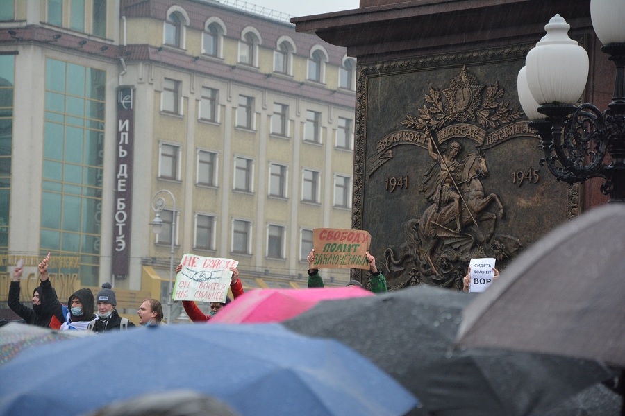 Собравшись на Центральной площади у Дома Советов, сотни человек двинулись по тротуару Ленинского проспекта в сторону площади Победы, скандируя: «Россия без Путина», «Раз, два, три — Путин, уходи», «Выпускай». Проезжающие мимо автомобили сигналили участникам акции.