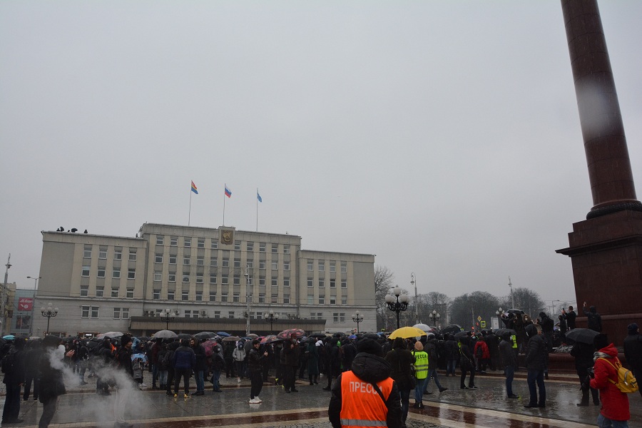 Также на площади Победы к участникам шествия присоединились другие митингующие. По оценкам корреспондентов «Нового Калининграда» в общей сложности в акции в поддержку Навального принимает участие около 3 тысяч человек.